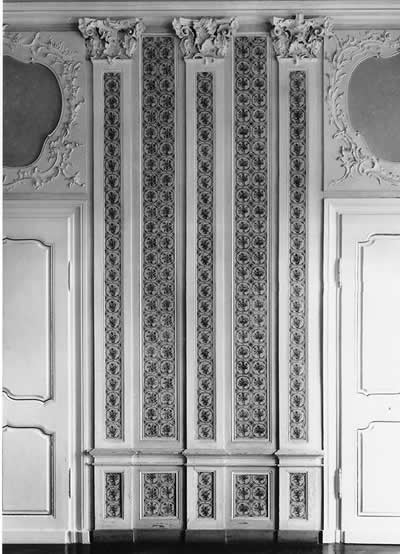 Die Fayencefliesen aus der in Fachkreisen bekannten Rotterdamer Werkstatt der Gebrüder Aalmis im großen Salon des Schlosses Rentweinsdorf sind wegen ihrer exzellenten Qualität von Scherben, Glasur und manganfarbener Bemalung von besonderer Bedeutung. Dazu kommt die interessante Kombination mit hervorragenden Rocaillestuckaturen
