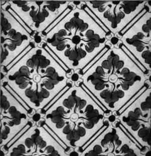 Deze tegel (Bloemruitjes) is in het ‚Rotterdamsch Modellenboek voor Tegels’ als Nr. 3 afgebeeld.