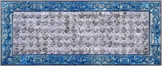 A blue and white tiled border was created in Lisbon to guarantee greater autonomy for the central compositions and to integrate them more successfully into the architectural surroundings.