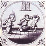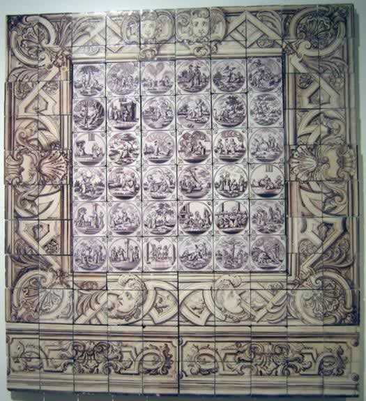 MNAz inv. no. 5450This large Dutch tile panel consisting of individual tiles was painted in manganese and shows figures from the Old and New Testaments.