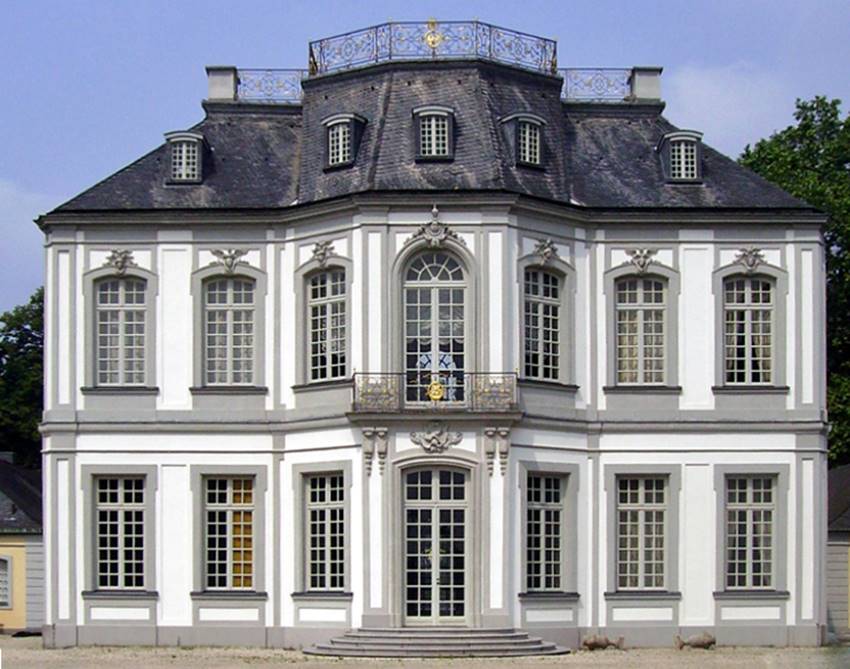 Maar geen van de betegelde vertrekken in deze lustoorden haalt het bij wat Falkenlust in Brühl (Rijnland) te zien geeft. Falkenlust is een jachtslot dat keurvorst Clemens Augustus (1700-1761) tussen 1729 en 1734 liet optrekken. Kosten noch moeite werden gespaard om er een toppunt van elegantie en verfijning van te maken, geheel naar de smaak en het plezier van een van de meest op luxe en pracht gestelde vorsten van Duitsland.