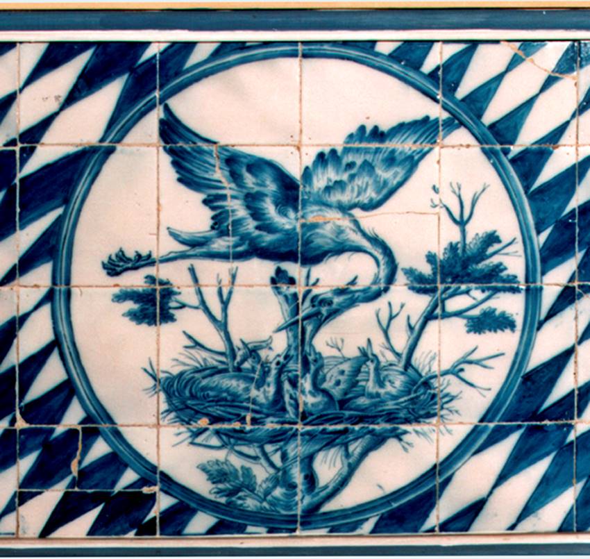 Fliesen aus der Rotterdamer Fayencewerkstatt >aan de Delftschevaart bij de Raambrug< für das kurfürstliche Schloss in Schwetzingen