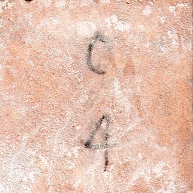 De achterzijden van deze tegels zijn gemerkt met letter C en cijfers 1 t/m 18.