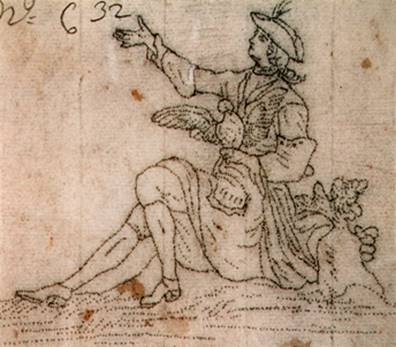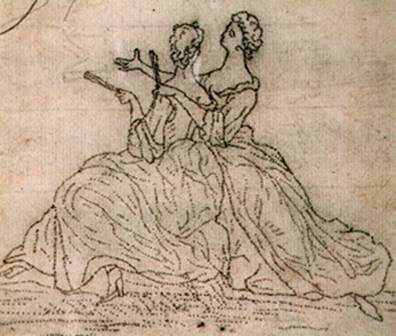 De zeer zorgvuldig uitgewerkte voorbeelden voor de tegels in Falkenlust, van de hand van de La Roque of een van zijn medewerkers, zijn in waterverf op geschept papier geschilderd en met de pen geaccentueerd. De menselijke figuren, dieren en grondjes met planten zijn in bruinzwarte verf tot in de kleinste details uitgewerkt. Daarbij zijn de contouren  en schaduwen duidelijk geaccentueerd met zwart, en de hoogsels met naar bruin neigend paars. Een goede weergave van de licht-donker waarden was het belangrijkste gegeven dat de tegelschilder nodig had om de voorstelling in nuances van blauw op het tinglazuur te kunnen schilderen. Veel details binnen de contouren zijn in pennenstreken gedaan, wat het gemakkelijk maakte het ontwerp op een gedetailleerde werktekening over te nemen.