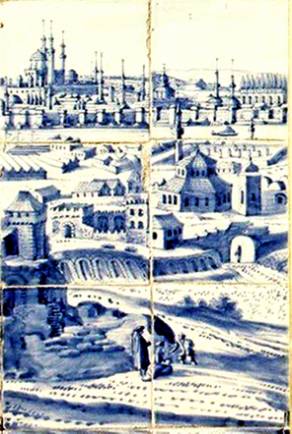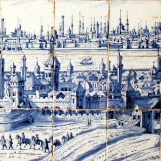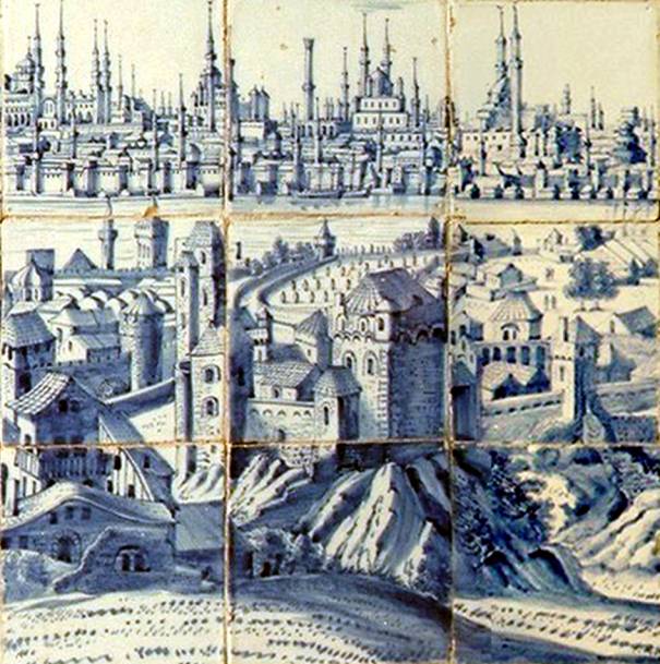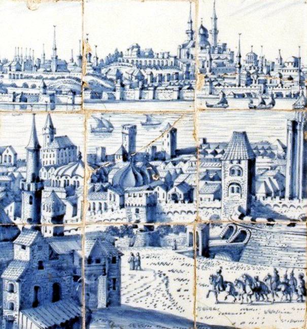Die Ansicht des Fliesengemäldes „Konstantinopel“ wird