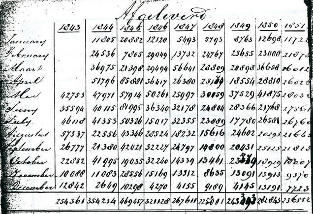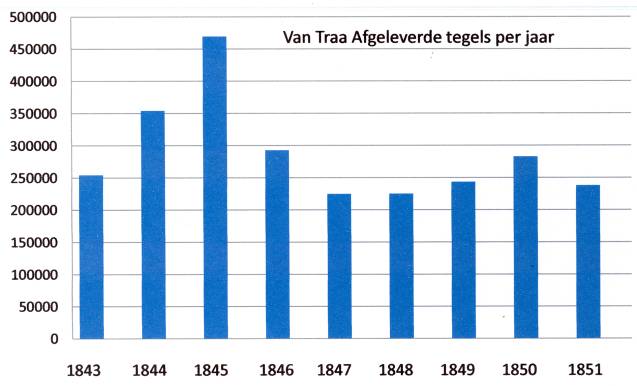 Traa maakte een overzicht van de afgeleverde tegels vanaf 1843 tot 1851 (afb.