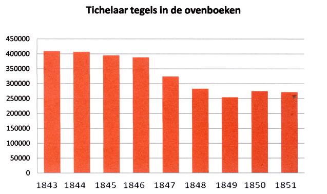 aantal afgeleverde tegels loopt eveneens terug in de jaren 1847 tot 1849.