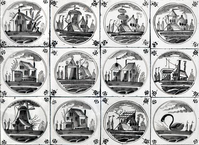 foto’s van tableaus van de tegelbakkerij Willem van Traa / Delfshaven
