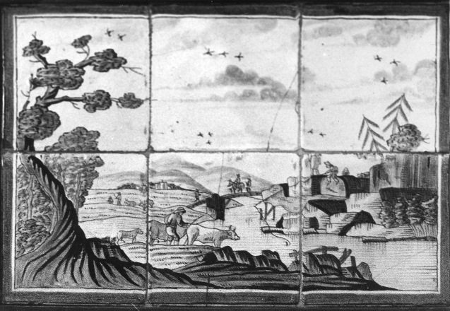 6 x 5 tegels, Aalmis, Rotterdam, 18de eeuw, naar een prent van Carel