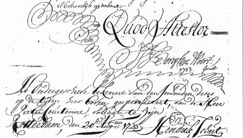 Afb. 3 Ondertekening van de aankoopakte op 10 augustus 1723