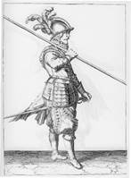 De voorstellingen van de soldaten gaan deels terug op prenten van Jacob de Gheyn in WAPENHANDELINGHE VAN ROERS MVSQVETTEN ENDE SPIESEN (Amsterdam 1608).