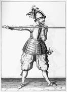In 1607 creëerde de Gheyn een reeks prenten die de militieoefening illustreren. Ze werden gepubliceerd in 1607-8 in Den Haag, Nederland, onder de titel Wapenhandelinghe van Roers Musquetten ende Spiessen.