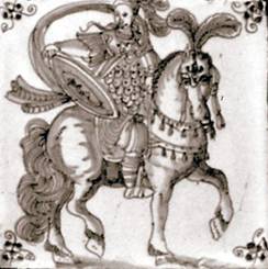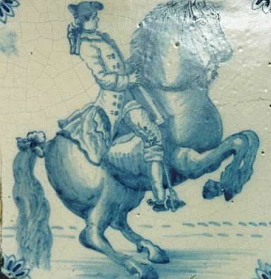 One of the Dutch tiles in the Best Room showing Cyrus Mayor on horseback