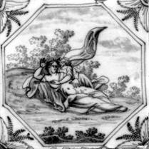 Eckmotiv: “geveerde hoek“, blau1. Mythologisch tafereel in achtkant